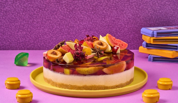 Sube de nivel con CHEESEKEICITO cremoso con galleta María, LA LECHERA® y MEDIA CREMA NESTLÉ®, ponche y fruta, ideal para ganar la partida dulce.