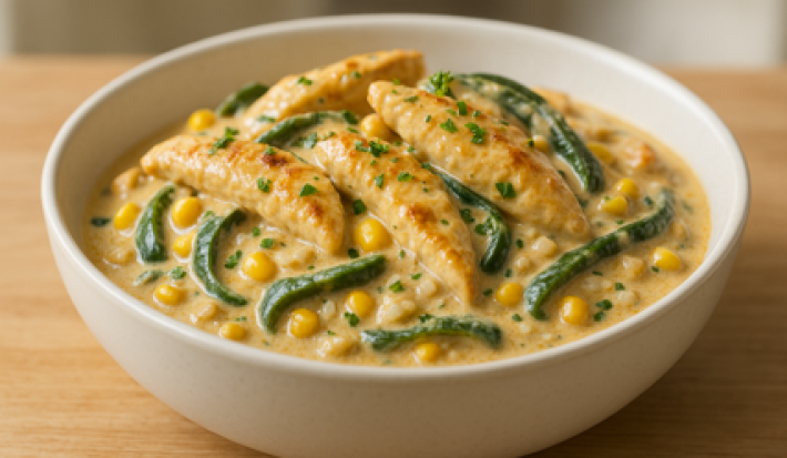 Prepara FAJITAS DE POLLO CREMOSAS con CHILE POBLANO, ELOTE y SALSA 4 QUESOS; receta fácil, jugosa y llena de sabor, ideal para comida casera rápida y deliciosa.