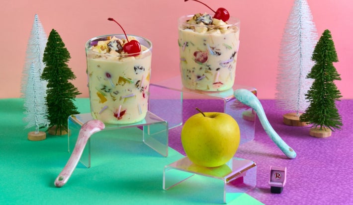 Sube de nivel con FROSTED FRUIT, postre cremoso con manzana y fruta en almíbar, MEDIA CREMA NESTLÉ®, LECHE EVAPORADA CARNATION® CLAVEL® y LECHE CONDENSADA LA LECHERA®.