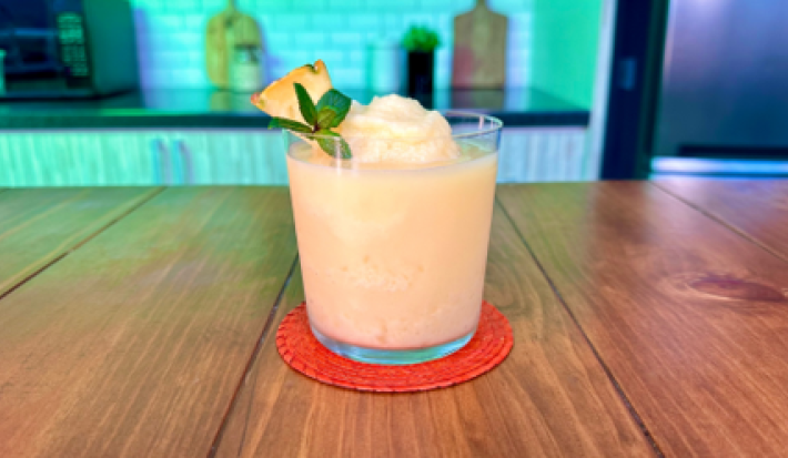 Congela la piña en cubos pequeños para que se licúe más rápido y conserve mejor su sabor.