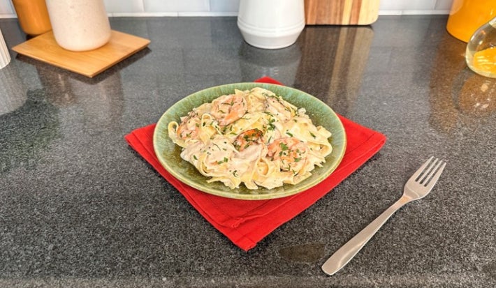 Disfruta PASTA CUATRO QUESOS CON CAMARONES en cremosa SALSA 4 QUESOS; receta fácil, rápida y deliciosa, ideal para comida especial con sabor irresistible y gourmet.
