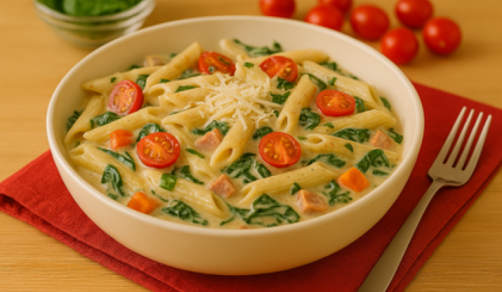 Pasta en Salsa de Cuatro Quesos y Espinaca
