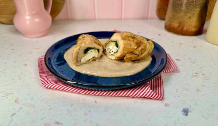Prepara PECHUGAS RELLENAS con jamón, queso y tocino bañadas en CREMA DE CHAMPIÑÓN, una RECETA FÁCIL, jugosa y perfecta para una COMIDA CASERA llena de sabor.
