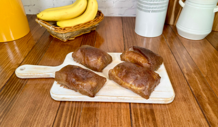 Disfruta estos ROLLITOS DE HOJA DE ARROZ Y PLÁTANO rellenos de queso crema, chocolate y cacahuate, crujientes por fuera y suaves por dentro, ideales como POSTRE FÁCIL y delicioso.