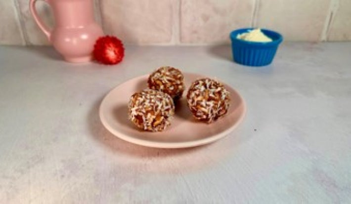 Deléitate con TRUFAS DE VAINILLA Y COCO hechas con COCO RALLADO, CHOCOLATE AMARGO y SVELTY®, endulzadas con MIEL. Un postre fácil, ligero y lleno de sabor.